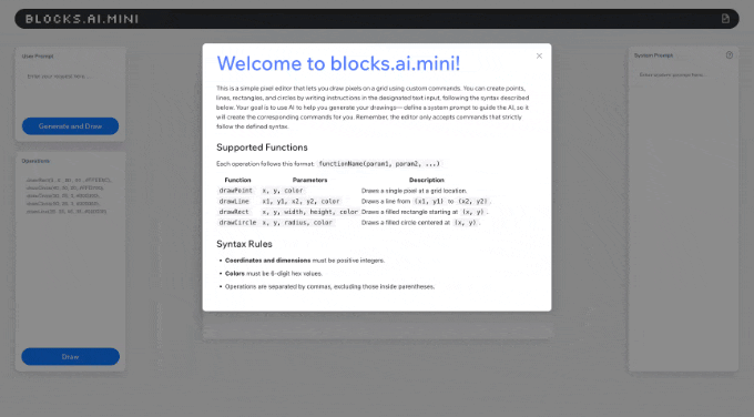 Designed and delivered an interactive workshop on prompt engineering. Using a custom-built pixel drawing editor, participants developed comprehensive system prompts to teach a large language model to operate the tool and generate unique, visually compelling drawings.